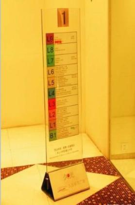 電梯樓層說明標(biāo)識牌,透明式標(biāo)識牌設(shè)計(jì),清晰的樓層標(biāo)識數(shù)字與說明,多種色彩的組合,具有強(qiáng)烈的視覺沖擊力,清晰明確的引導(dǎo)指示說明內(nèi)容,體現(xiàn)出企業(yè)對外周到的導(dǎo)向服務(wù)。